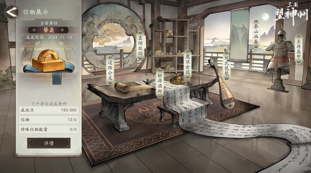 除了爵位的提升,我们还设计了展示更多成就的信物系统。信物代表着显著的战功奖赏,即前述李广未能获得的显赫功绩。
