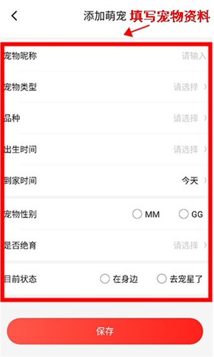 1、用户打开软件能够添加宠物的资料。