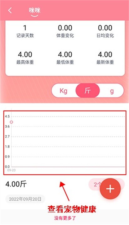 3、软件内还可以每天记录宠物的体重。